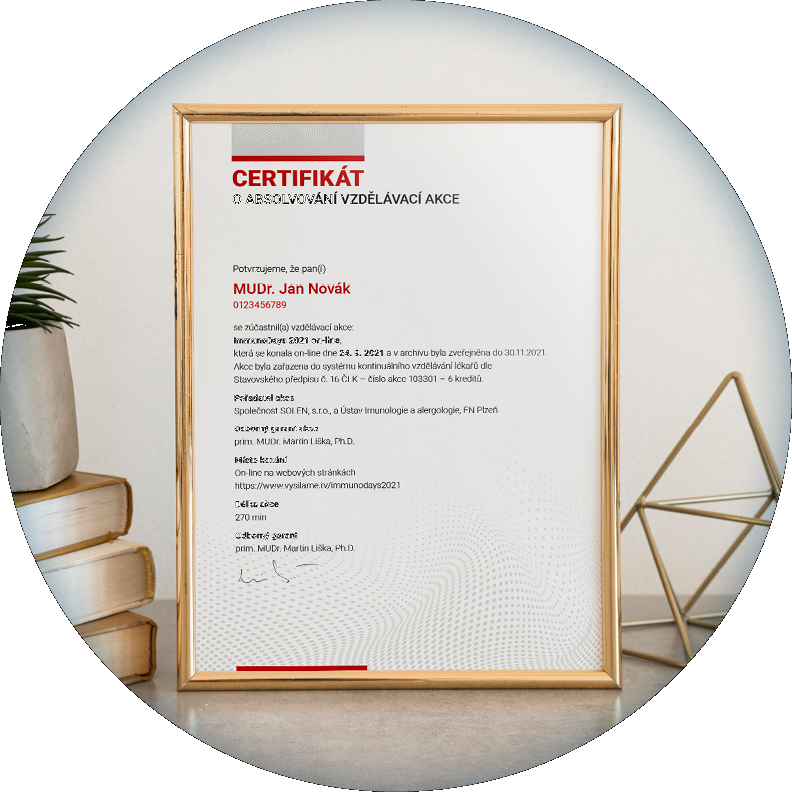 Ať už jste se na kongres přihlásili sami nebo Vaši registraci zajistil partner akce, vždy je třeba na místě projít také naší registrací, kde si Vaši prezenční účast potvrdíme. Zároveň potřebujeme znát Vaše ČLK ID, bez kterého není možné kredity do systému vzdělávání ČLK nahrát (své ČLK ID můžete vyhledat ZDE). Pokud budou tyto dvě podmínky splněny, pak už se o vše postaráme. Certifikát zašleme na Váš e-mail uvedený při registraci do 10 dnů od skončení akce a zasloužené kredity automaticky připíšeme do systému vzdělávání ČLK.